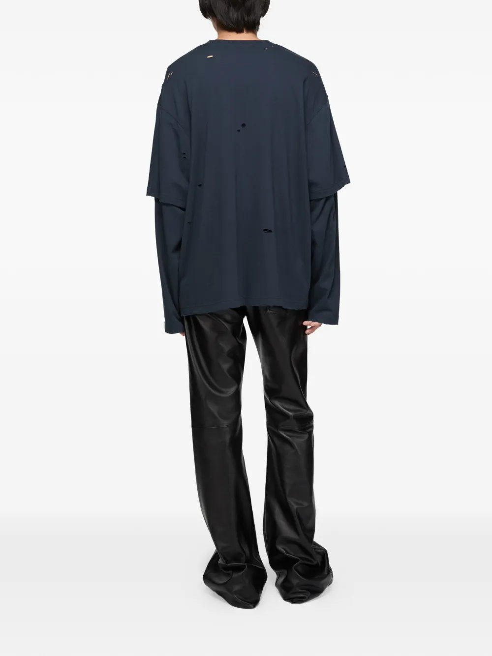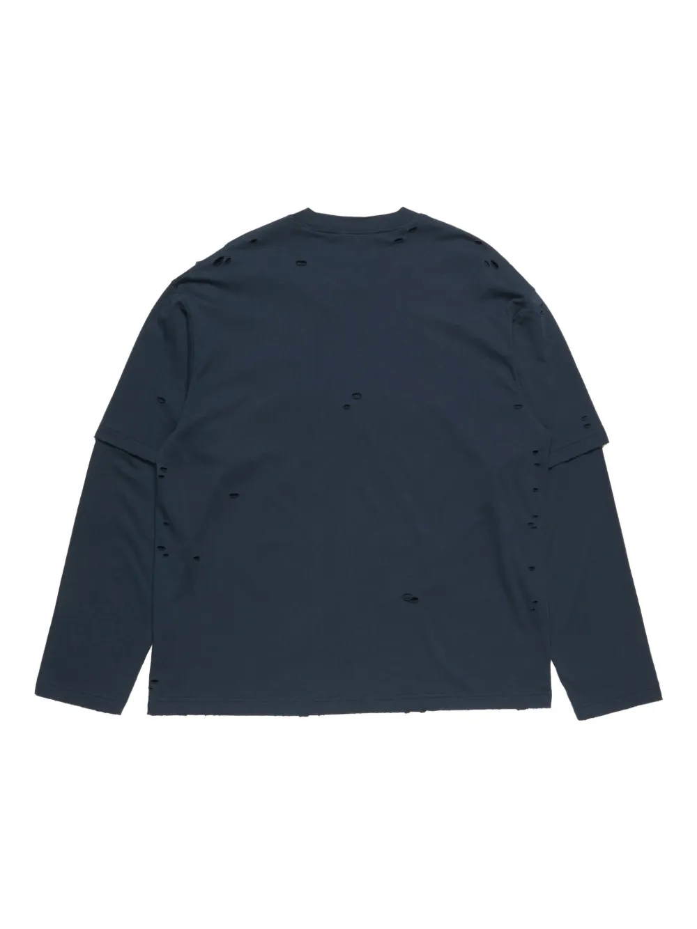 New Season Acne Studios layered logo-print distressed T-shirt Imported Highlights navy blue logo print distressed effect crew neck layered long sleeves Composition Organic Cotton 75%, Recycled Polyester 25% Washing instructions Read Manufacturer Guidelines Product IDs FARFETCH ID: 32951490 Brand style ID: CL0431