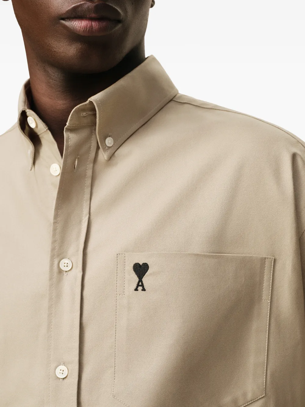 New Season AMI Paris Ami De Coeur logo-embroidered shirt Imported Highlights taupe beige embroidered chest detail button-down collar button fastening long sleeves Composition Cotton 100% Washing instructions Machine Wash Product IDs FARFETCH ID: 33115954 Brand style ID: E26HSH822CO0210