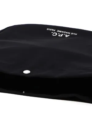 A.P.C. Journal shoulder bag Imported Highlights black press-stud fastening adjustable shoulder strap internal slip pocket logo print to the front Composition Outer: Polyester 100% Product IDs FARFETCH ID: 27189317 Brand style ID: PSAKRM61939