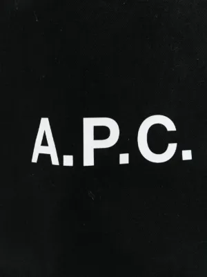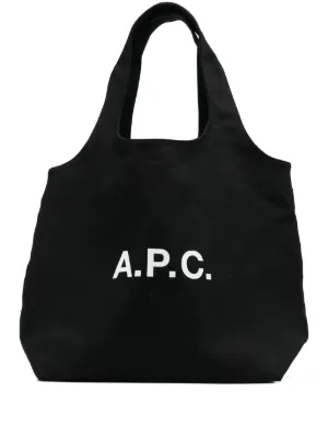 A.P.C. logo-print tote bag Imported Highlights black two top handles main compartment open top Composition Outer: Fabric 100% Wearing The model is 6 ft 2 in wearing size OS Product IDs FARFETCH ID: 30571529 Brand style ID: COZZSM61565