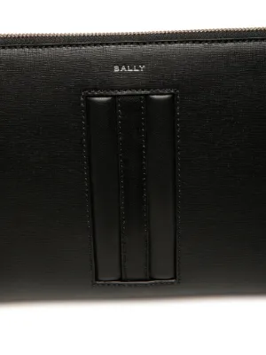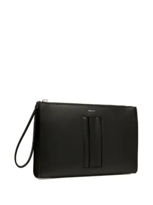 Bally panel-detail leather clutch bag Imported Highlights black top zip fastening panel detailing logo stamp to the front wrist strap Composition Outer: Recycled Leather 100% Product IDs FARFETCH ID: 23839610 Brand style ID: MAM00VEC001