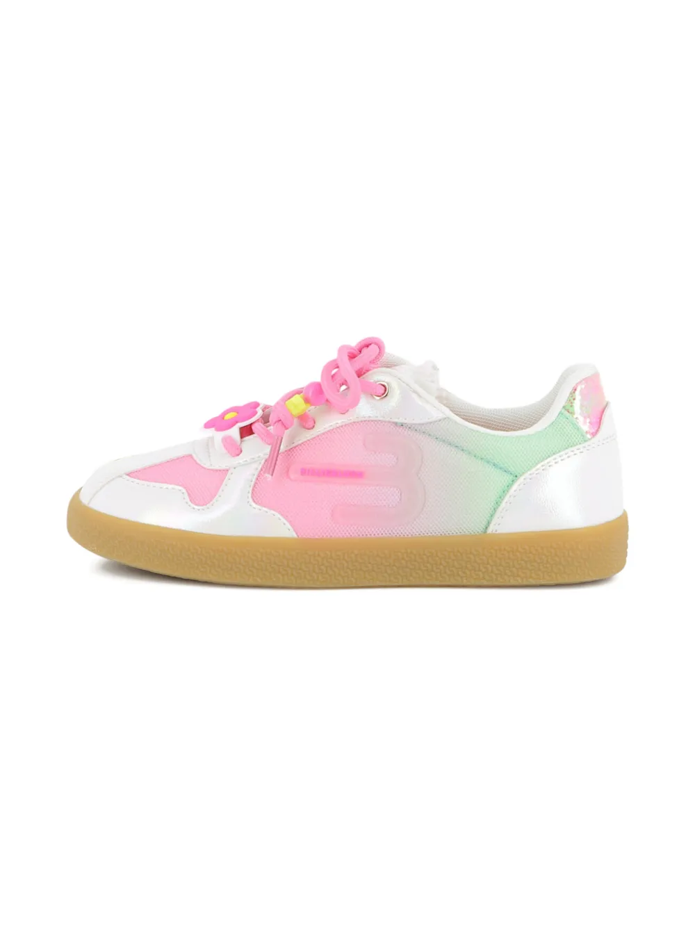 New Season Billieblush flower-embellished sneakers Imported Highlights white flower detail beaded laces iridescent panels round toe flat sole Composition Lining: Fabric 100% Sole: Rubber 100% Outer: Calf Leather 100% Washing instructions Machine Wash Product IDs FARFETCH ID: 32982271 Brand style ID: U22001
