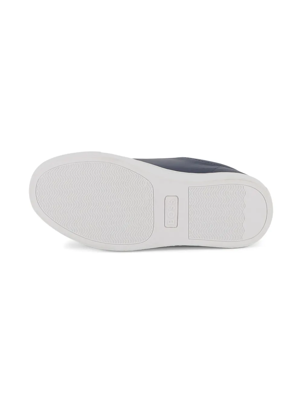 Final Sale BOSS Kidswear touch-strap sneakers Imported Highlights navy blue touch strap fastening logo detailing cushioned collar contrasting sole Composition Sole: Rubber 100% Outer: Calf Leather 100% Lining: Microfibre 100%, Fabric 100% Product IDs FARFETCH ID: 30082318 Brand style ID: J52660