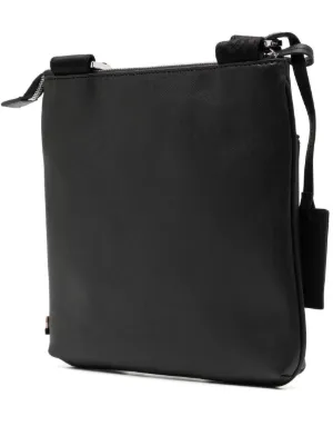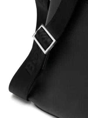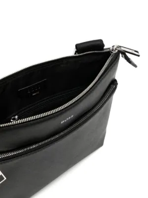 black calf leather silver-tone logo lettering silver-tone hardware adjustable logo shoulder strap top zip fastening main compartment front zip-fastening compartment