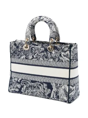 2021 Large Embroidered Canvas Toile de Jouy Lady D Lite satchel