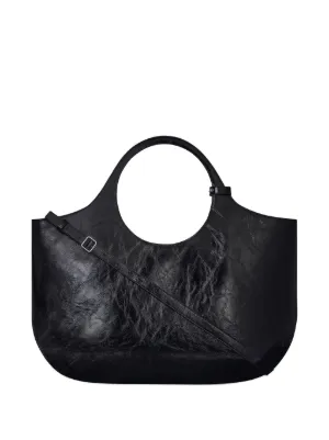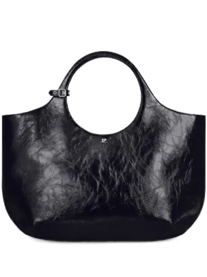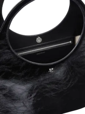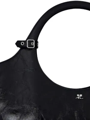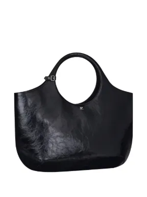 Courrèges large Holy handbag Made in Italy Highlights black calf leather crease effect logo plaque adjustable detachable shoulder strap circular top handles adjustable handle wrap magnetic fastening internal zip-fastening pocket internal logo stamp full lining silver-tone hardware Composition Outer: CALFSKIN 100% Product IDs FARFETCH ID: 24503774 Brand style ID: 424GSA145CR0043