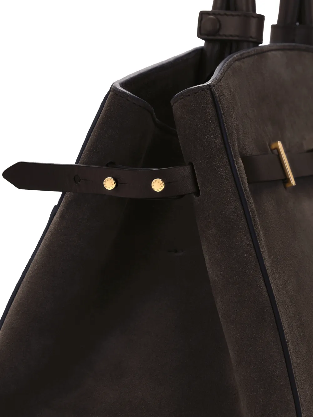 New Season DeMellier The Hudson brown tote bag Imported Highlights dark chocolate top handles gold-tone hardware detachable and adjustable shoulder strap dog-clip closure back slip pocket gold-plated feet at the base Composition Outer: Calf Suede 100%, Grained Calf Leather 100% Product IDs FARFETCH ID: 32363001 Brand style ID: D101THEHUDSONDARKCHOCOLATE