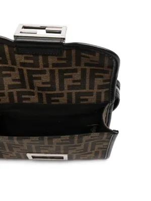 FENDI Double Baguette cross body bag Made in Italy Highlights chocolate brown foldover top with magnetic fastening adjustable detachable shoulder strap partitioned compartment This piece comes complete with a protective dust bag. Composition Outer: Calf Leather 100%, Fabric 100% Wearing The model is 5 ft 10 in wearing size OS Product IDs FARFETCH ID: 29437924 Brand style ID: 7VA649ALWK