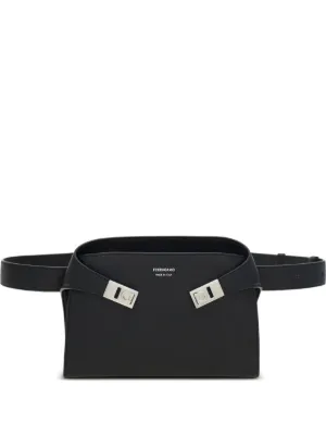 Ferragamo bridge-closure belt bag Made in Italy Highlights black bridge closure waist belt Composition Outer: CALFSKIN 100% Product IDs FARFETCH ID: 30979557 Brand style ID: 787850