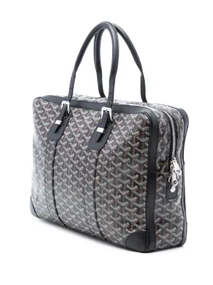 Pre-Owned Goyard Pre-Owned 2010-2020 Goyardine Ambassade MM business bag Made in France Highlights coated canvas body with leather trim rolled leather handles top zip closure exterior front slip pocket interior zip and slip pockets black This item has no inclusions. Condition: EXCELLENT. This previously owned item is in near-perfect condition with no signs of damage or use. Please refer to the photos on this product page for a detailed view of the item, including any damages declared. Condition Excellent Learn More About Condition Rating Composition Outer: Fabric 100% Body: Canvas 50% Trims: Leather 50% Product IDs FARFETCH ID: 33578068 Brand style ID: IAYF9RTS8I81BMLH