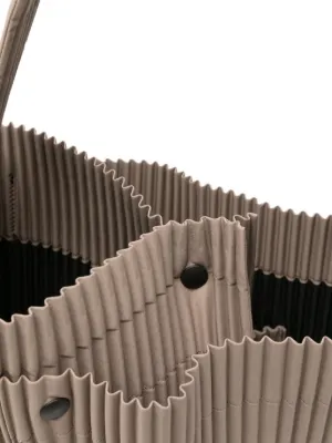 Homme Plissé Issey Miyake Utility pleated tote bag Imported Highlights beige pleated design adjustable shoulder strap press-stud fastening Composition Polyester 100% Wearing The model is 6 ft 2 in wearing size OS Product IDs FARFETCH ID: 32155016 Brand style ID: HP58AG432