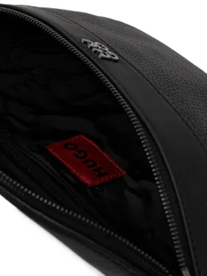 HUGO logo-detail belt bag Imported Highlights black pebbled texture zip fastening adjustable buckle strap logo detail main compartment Composition Outer: Recycled Polyurethane 62%, Polyester 30%, Polyurethane 8% Lining: Polyester 100% Product IDs FARFETCH ID: 31562325 Brand style ID: 50547437