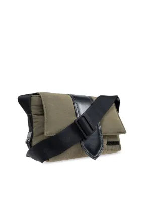 Jacquemus Le Petite Messenger Bambino cross body bag Made in Italy Highlights green leather trim panelled design logo lettering debossed logo to the rear foldover top with magnetic fastening adjustable shoulder strap front zip-fastening pocket slip pocket to the rear debossed internal logo internal slip pocket main compartment full lining This piece comes complete with a protective dust bag. Composition Outer: Polyamide 100% Product IDs FARFETCH ID: 24227503 Brand style ID: 245BA3733174