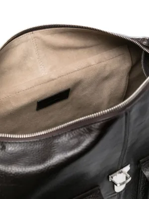 Runway LEMAIRE Gear pebbled holdall bag Imported Highlights black leather pebbled texture adjustable shoulder strap two front flap pockets rear zip-fastening pocket debossed logo to the rear main compartment internal logo patch suede lining silver-tone hardware top zip fastening foldover top clasp fastening This piece comes complete with a protective dust bag. Composition Outer: Leather 100% Product IDs FARFETCH ID: 22849547 Brand style ID: BG0083LL0067