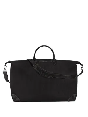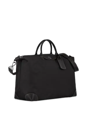 Longchamp extra large Boxford travel bag Imported Highlights black leather contrast stitching embossed logo to the front leather tag detachable shoulder strap two rounded top handles top zip fastening main compartment internal slip pocket packable design Composition Outer: Recycled Polyester 100% Product IDs FARFETCH ID: 17563709 Brand style ID: L1625080
