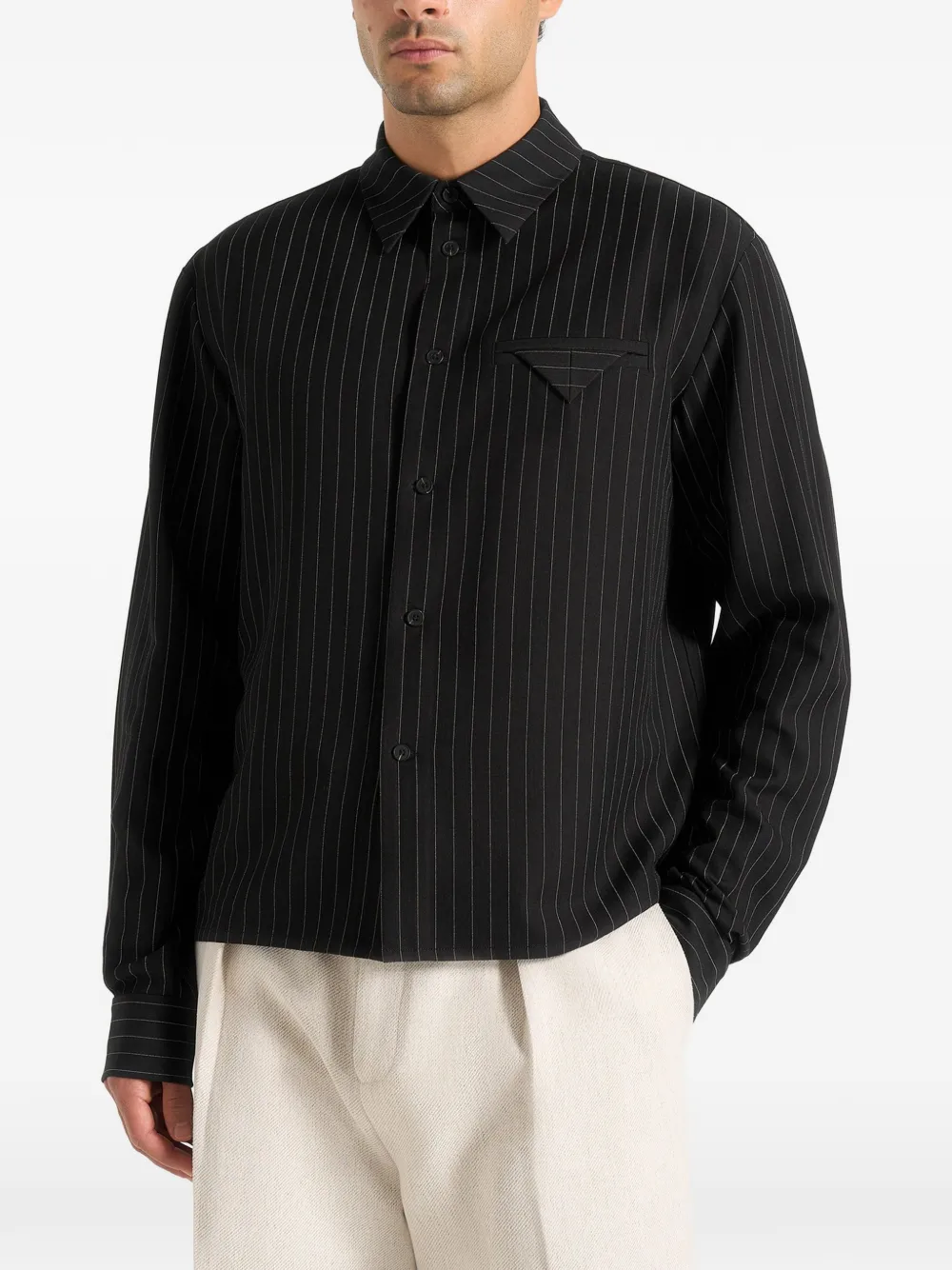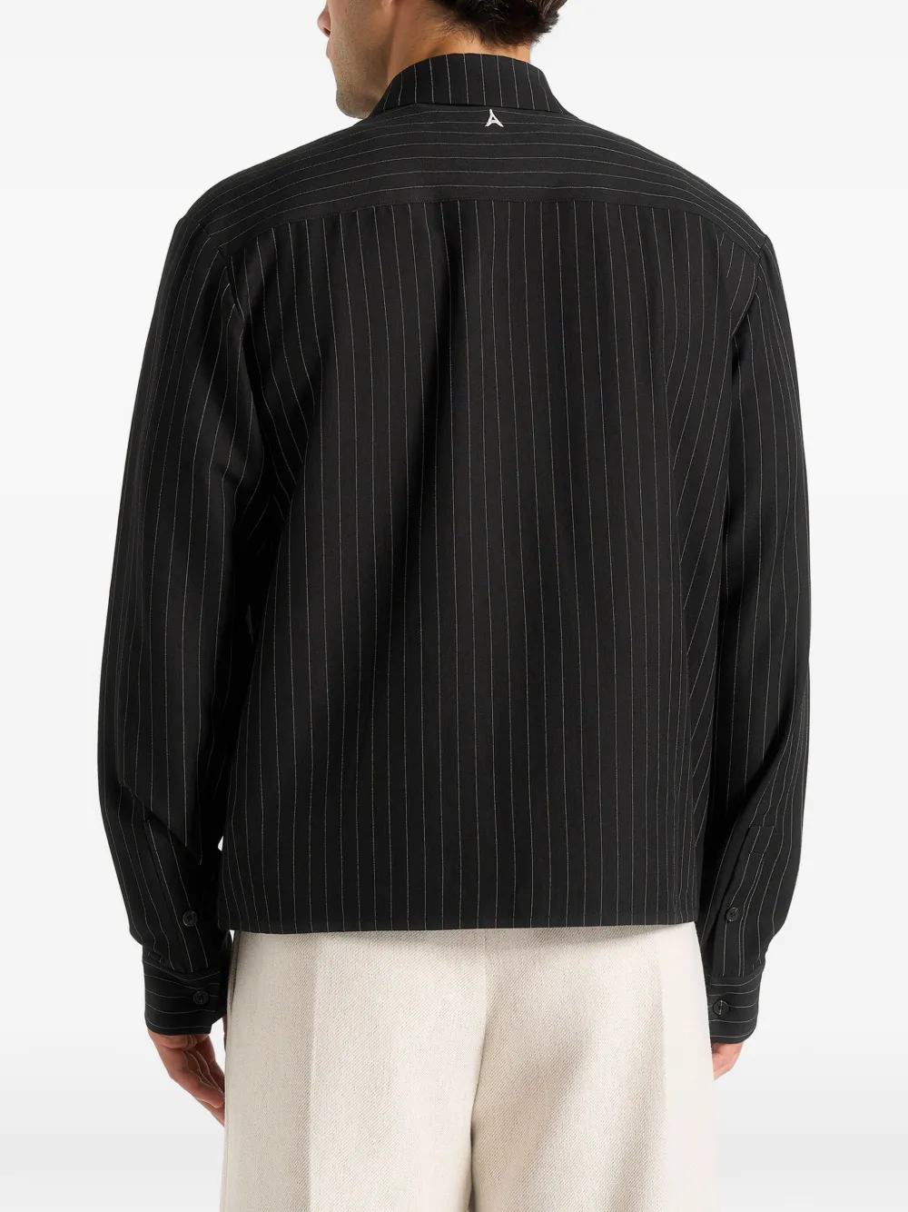 Arlo pinstripe-pattern long-sleeve black crop shirt