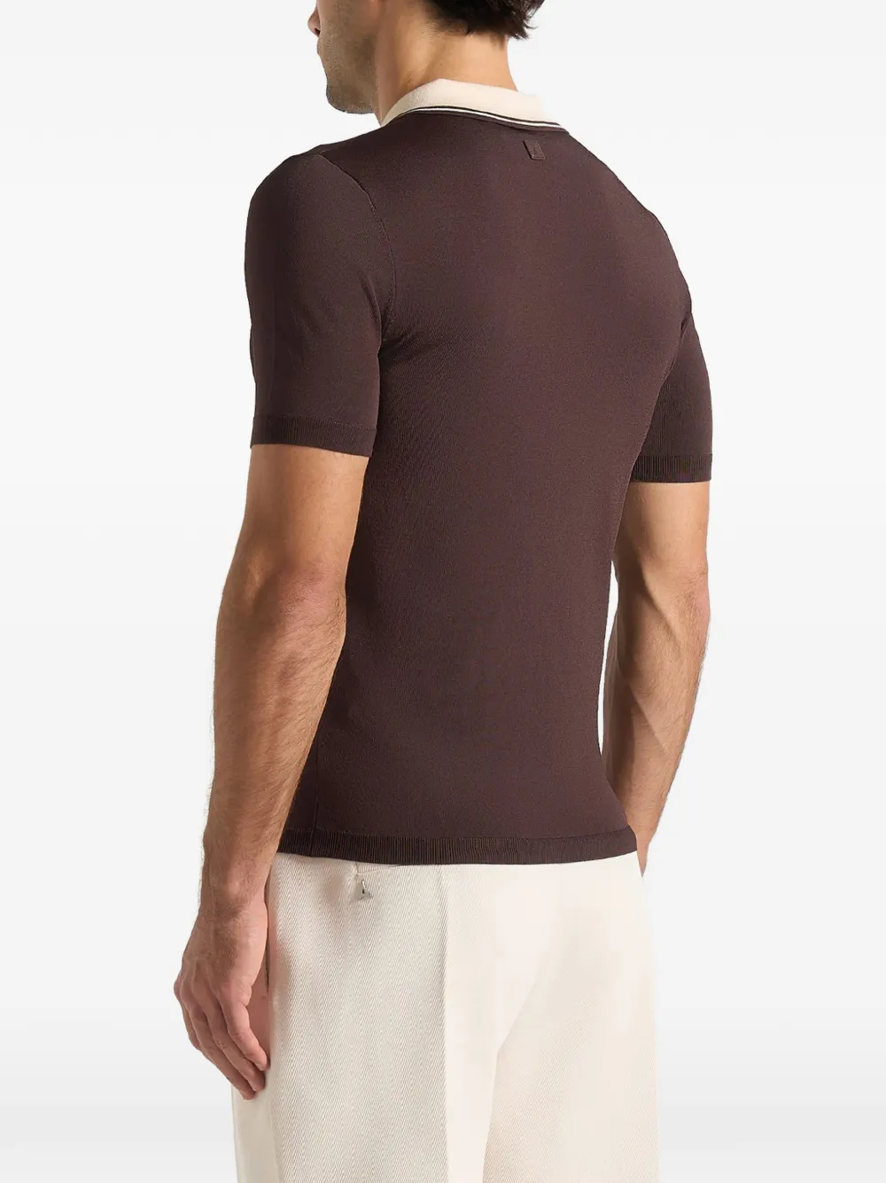 Manière De Voir Roux contrast-detail polo shirt Imported Highlights brown contrast button-up collar ribbed cuffs ribbed hem Composition Viscose 78%, Nylon 22% Washing instructions Read Manufacturer Guidelines Product IDs FARFETCH ID: 32985493 Brand style ID: MAN3550