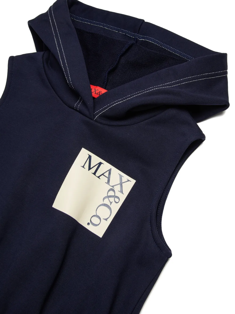 New Season MAX&Co. Kids hooded logo dress Imported Highlights navy blue logo print elasticated waist sleeveless hood Composition Cotton 100% Washing instructions Read Manufacturer Guidelines Product IDs FARFETCH ID: 33137653 Brand style ID: MX0266MX056