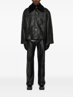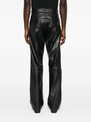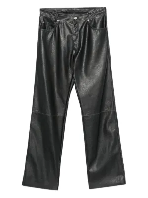 MM6 Maison Margiela leather-effect five-pocket trousers Imported Highlights black leather effect five pockets button fastening belt loops Composition Polyester 100% Washing instructions Read Manufacturer Guidelines Wearing The model is 6 ft 0 in wearing size 48 Product IDs FARFETCH ID: 31901304 Brand style ID: SH2LA0045M35455