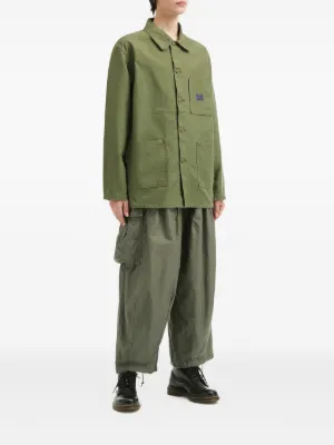 Needles cargo-pocket trousers Imported Highlights green cargo pockets drawstring fastening drawstring hem cotton Composition Cotton 100% Washing instructions Read Manufacturer Guidelines Product IDs FARFETCH ID: 31771404 Brand style ID: RW239