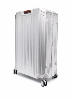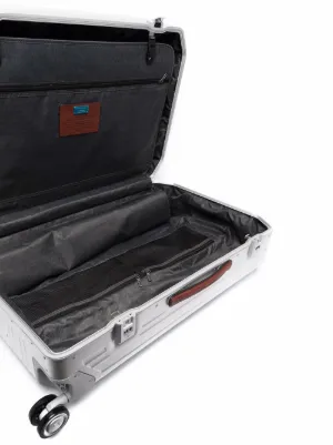 PIQUADRO big Alu Spinner hardcase trolley silver leather logo plaque lightweight construction telescopic handle side two-way zip fastening four wheels partitioned compartment Imported Composition Outer: Leather 100%, Aluminium 100%, PVC 100% Product IDs FARFETCH ID: 17730001 Brand style ID: BV4428ALU