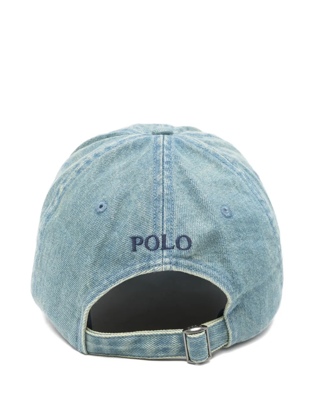 New Season Polo Ralph Lauren logo baseball hat Imported Highlights denim blue logo motif top button curved peak adjustable strap back embroidery Composition Cotton 100% Product IDs FARFETCH ID: 33903906 Brand style ID: 211B14275