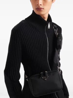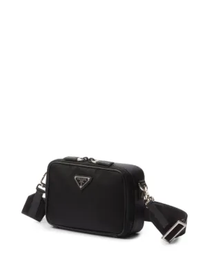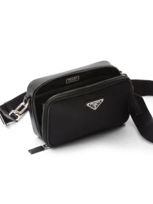 Prada Brique messenger bag Highlights black enameled triangle logo top zip fastening detachable adjustable shoulder strap removable pouch internal patch pocket Composition Outer: Recycled Nylon 100%, Calf Leather 100% Product IDs FARFETCH ID: 23861608 Brand style ID: 2VH070VXMP2DMH