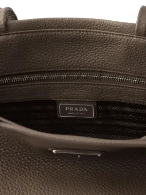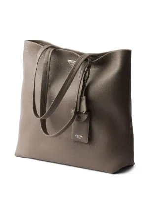 Prada leather tote bag Highlights taupe grey open top two flat top handles internal zip-fastening pocket enamel triangle logo removable leather name tag and key ring logo-print Re-Nylon lining Composition Lining: Recycled Polyamide 100% Outer: Calf Leather 100% Product IDs FARFETCH ID: 27676409 Brand style ID: 2VG130VOOO2BBE
