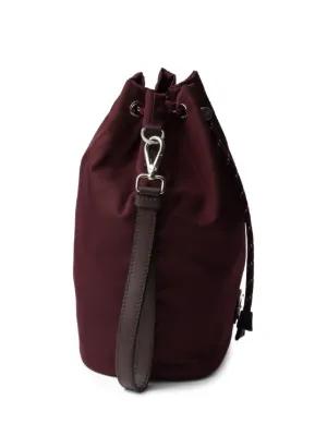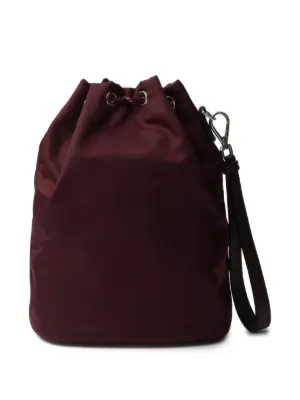 New Season Prada Speedrock Re-Nylon pouch Highlights burgundy leather wrist strap enamel triangle logo drawstring fastening silver-tone hardware Composition Outer: Calf Leather 100%, Recycled Polyester 100% Product IDs FARFETCH ID: 33138349 Brand style ID: 2NE0672HE1