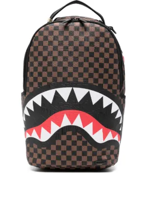 New Season Sprayground check-pattern shark-print backpack Imported Highlights brown check pattern shark mouth print top handle adjustable straps zip fastening Composition Outer: PVC 100% Lining: Polyester 100% Product IDs FARFETCH ID: 33170104 Brand style ID: 910B8232