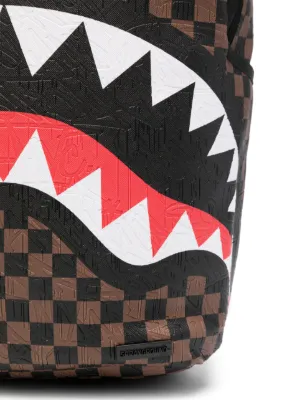 check-pattern shark-print backpack