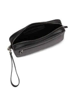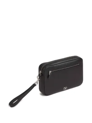 Previous Season Valentino Garavani logo zip-top clutch bag Made in Italy Highlights Valentino bag black leather zip top fastening detachable wrist strap internal compartments The full look includes Valentino Garavani accessories. Composition Outer: Grained Calf Leather 100% Product IDs FARFETCH ID: 30989802 Brand style ID: YP0AN8UAG