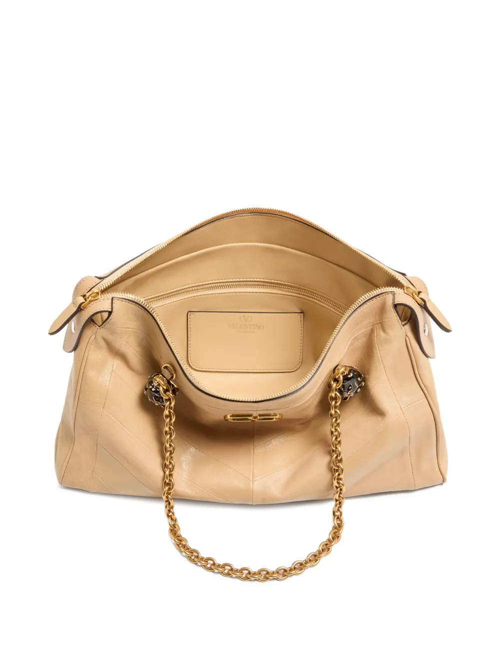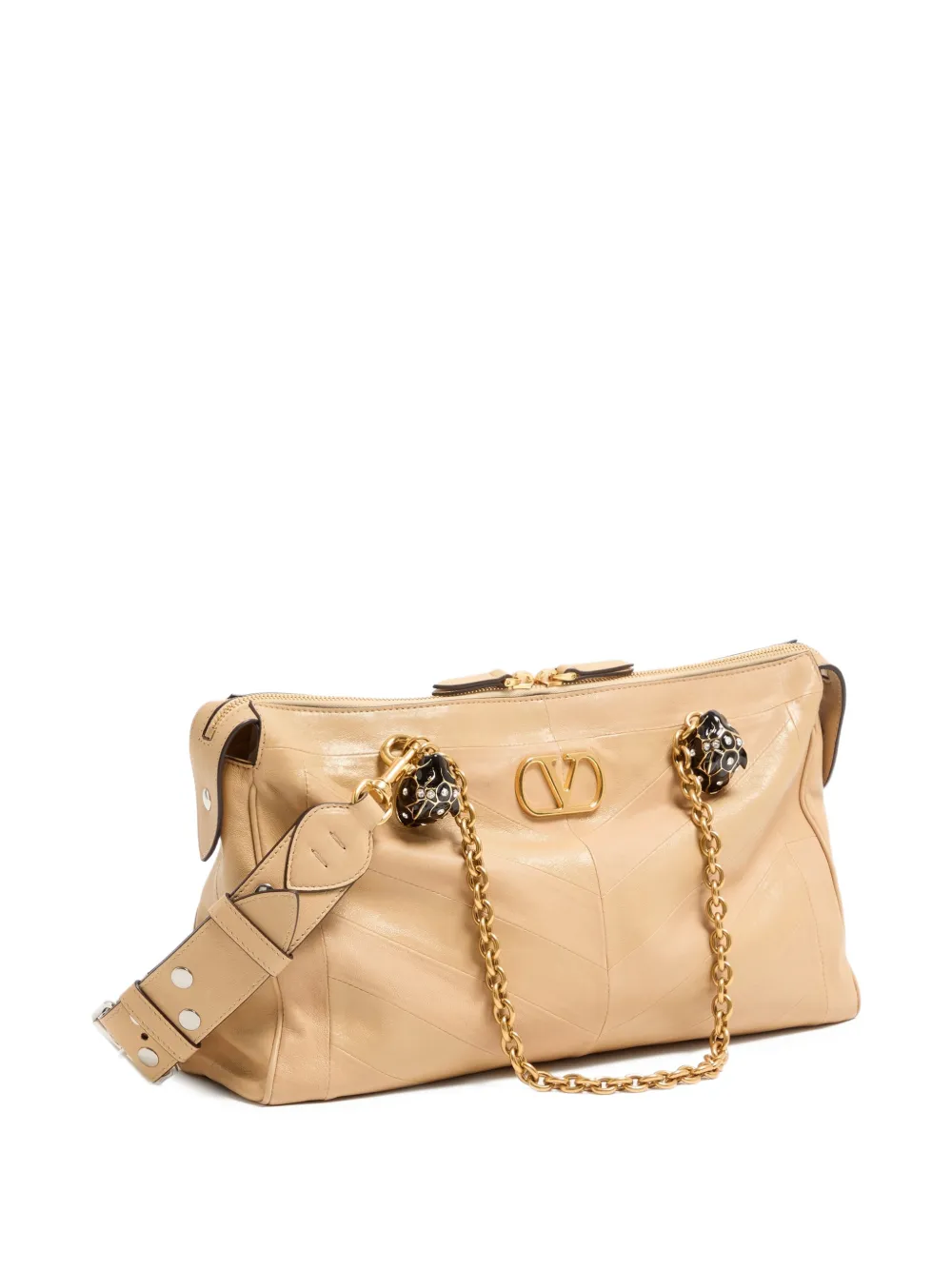 New Season Valentino Garavani Panthea chevron-pattern shoulder bag Made in Italy Highlights Valentino bag light brown chevron pattern enamelled feline heads detail gold-tone hardware vlogo detail adjustable removable studded shoulder strap The full look includes Valentino Garavani accessories. Composition Outer: Nappa Leather 100% Lining: Nappa Leather 100% Product IDs FARFETCH ID: 33305799 Brand style ID: WB0S70UYF