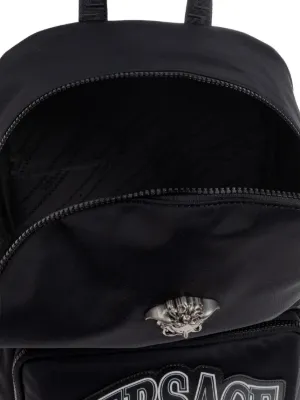 Versace medusa-logo backpack Made in Italy Highlights black medusa-head emblem logo patch zip fastening adjustable straps Composition Nylon 100% Product IDs FARFETCH ID: 31221238 Brand style ID: 10206451A15854
