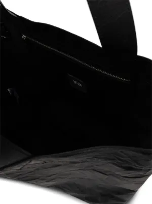 Y-3 logo-print tote bag Made in Italy Highlights black open top two top handles internal zip-fastening pocket This piece comes complete with a protective dust bag. Composition Outer: Polyurethane 100% Product IDs FARFETCH ID: 28448467 Brand style ID: JD2900